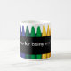 En grafisk design av färg kritor och anpassadets text Tack för att du är min lärare i mugg. Originalteckning/design: Copyright Charmaine Paulson