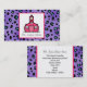 En lärarevisitkort som presenterar logotypen av den rosa schoolhousen beklär på, insida som en vit kvadrerar skisserat i rosor. Bakgrund beklär på, och tillbaka är det purpurfärgade leopardtrycket. Personifiera texten beklär och drar tillbaka på med din information.