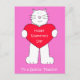 En illustration av ett stort vitt kattungar som håller ett rött hjärta mellan det framsida tassar. Hjärtat har "Glad Alla hjärtans dag", "Till en Speciell lärare" skriven under kattens bild. Bilden ställs in mot en ljus bakgrund för färgad av rosa.