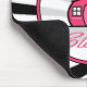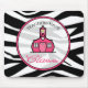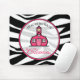 En mousepad som presenterar en svart zebra tryckbakgrund. Logotypen av den rosa schoolhousen som omges av text "lärare, har att klassificera" inre rent cirklar den formade ramen som skisseras i rosor.