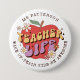 Lärare Life Wake Up Teach School Personlig Namn Buttons har ett rött äpple som dekoreras med blommor med texten "Lärarliv" med texten "Vakna upp, lära ut barn, vara fantastisk" nedan i modern manusstil och personlig med ditt eget namn. Perfekt till din favoritlärare för läraruppskattning, födelsedag, jul, helgdagar med mera. Designad av Evco Studio www.zazzle.com/store/evcostudio