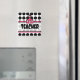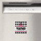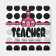 En magnet för lärare med en bakgrund av svart polka dots. Anpassadets text. Logotyp av Rosa Schoolhouse i centrum.