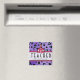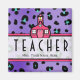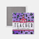 En magnet för lärare med en bakgrund av lila leopard-tryck. Anpassadets text. Logotyp av Rosa Schoolhouse i centrum.