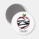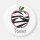 En magnet för lärare med illustration av ett svart och vitt äpple zebra tryck med rosa trim. Anpassadets text under underrubriken lyder "Lärare". Leta efter andra äppelartiklar från zebra tryck i kategorin "äpplen" i Rosa skolhus.