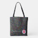 På den här Tote Bag är ett ursprungligt ordspråk och teckningar och design av ZoeSPEAK, en slogan för lärare som lyder "Lärare FOOD FOR THOUGHT". Ord "Lärare " är i ett kursivt typsnitt för äppelgrönt, vilket leder till en illustration av en vit midplatta med orden "FOOD FOR THOUGHT" i rött huvudstad brev, böjd för att fylla mitten av skålen. Överst på plattan finns ett glansigt rött äpple med en grönt löv. Bakgrunden är ett färgstarkt mönster, främst grått i mörken, men sprinklat med , blå och gröntar. Brev i alfabetet, med versaler och undre fodral, plus siffror från noll till nio springa diagonalt i helt vitt längs bakgrunden.
