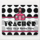 En mousepad för lärare som presenterar en vitbakgrund med svart polka dots. Centrerar inre rent för text delar upp med rosaklippning är anpassadet. Logotyp av den rosa schoolhousen ovanför text. Sök efter mer polka pricker gåvor i "polkaen pricker" kategori av det rosa Schoolhouselagret.