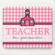 En mousepad för lärare som presenterar en rosa ginghambakgrund. Centrerar inre rent för text delar upp med rosaklippning är anpassadet. Logotyp av den rosa schoolhousen ovanför text.