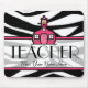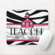 En mousepad för lärare som presenterar en svartvit zebra tryckbakgrund. Centrerar inre rent för text delar upp med rosaklippning är anpassadet. Logotyp av den rosa schoolhousen ovanför text. Sök efter mer zebra tryckgåvor i kategorien "för det djura trycket" av det rosa Schoolhouselagret.