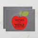 Ett stort rött äpple med tankfull typografisk citat inne i kritbordsbakgrunden skapar en personlig lärare tack vare en ge uttrycksgåva. Fyll i texten och namnteckning på baksidan av vykortet!