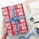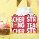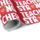 Coola julomslutning papper med en stark lärare, ett rött äpple och ett vitt hjärta. Det bästa sättet att slå ihop julklappar för lärare för att visa stöd och tacksamhet för dem. Färglöst rödsäsong färg.