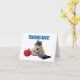 Kortet med en fotodesign av ett dekorerat leende sten tillsammans med en anteckningsbok, penna och äpple med filt, där det står "Lärare Sten!"