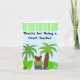 Sköt en lärare med det här söta tackkortet. Teddybjörn mellan handflatan träd och stora djungelväxter.