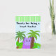 Sköt en lärare med det här söta tackkortet. Lila Hippopotamus bland handflatan träd och stora djungelväxter. Anpassa genom att ändra meddelandet efter behov.