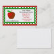 Denna visitkort är perfekt för någon lärare. Den presenterar ett rött äpple på vänster sida och informationen om lärare på rätsidan. Den omges med en grönt och en vit kontrollerad boarder därefter en röd boarder.