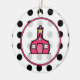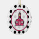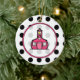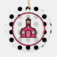 Julen för en lärare smyckar att presentera en bakgrund av svart polka dots över vit beklär på. Ram för rosor för rosa Schoolhouselogotyp inre.