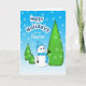 Den gulliga julen semestrar kortet för lärare som presenterar en snögubbe eller snowkid! i snön.