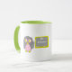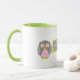 En mugg för lärare som presenterar en illustration av ett grått ugglaanseende på en svart tavla. Ugglan har den rosa sparrebuken. Personifiera med ditt namn på den svart tavlan. Sök efter att matcha objekt på den rosa schoolhousen.