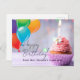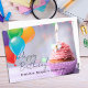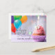 Önska Grattis på födelsedagen till studenter med det här personligen vykort. Fågelkaka med ballonger och manus och modern text. Tomt vykort för skriva av anteckning.