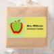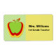 Underbarare tittar namnlister för lärare, utförda i grönt och vita kontroller, på den lämnat sidan och i fast gult, på högerna. Färga äpplen med lager dekorerar den kontrollerade bakgrunden och den svarta texten på den fasta gulten på dekalen. Anpassa texten till det du vill. Underbar för Back to school, Open House och Meet Teacher tillfälle.