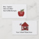 Denna visitkort har ett äpple med ett ställe för klassen på bekläda och ett skolahus med stället för namn av att skola på baksidaen.