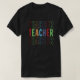 Den här designen har en svart t-shirt med ord "TEACHER" som upprepas tre gånger i en lodrät stack. Varje "TEACHER" är skriven i ett annat färg och skisseras.