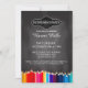 Festive pension-partiets inbjudningar till lärare med ett krittema - Läser Pension Party" överst i vitt mot ett faux-kritbrädemblem med silver glitter som ser kant ram. Grund har ljusa, färgpennor fotot gräns. Faux black, vintage chalkboard-bakgrund. Personlig med lärarens namn i chic, skript. Den anpassade lärarinformationen pension party, inklusive OSA, skrivs ut i vit brev nedan. Bakåt har matchande bakgrundsbild för tavla.Anmärkning: Alla bilder skrivs ut. Inte glitter. Roligt, den unika grundskolelärarens redo i inbjudningskorten i pension för att vara personlig med din egen anpassningsbar. Inte bara för läraren pension. Kompletterar temapartyna för svart och silver eller krita. Perfekt för teman om konstnärer pension eller konstverk party.