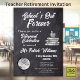 Hedra en älskad lärare med vår inbjudan till lärarens pensionsfest – en design som hyllar år av hängivenhet och lärande. Med en svart tavla-stil bakgrund med vintage gråtonsgrafik av en glob och klassiska böcker med ett äpple, utstrålar denna inbjudan en tidlös skolhus charm. Den eleganta skrivstilen och det sans serif teckensnittet framhäver “Skolan är slut för alltid” och inbjuder gästerna till en minnesvärd “Pensionsfirande.”