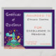 Ett färgstarkt utbildningsbevis för läsning som lämpar sig för använda av en lärare för ett skolklassrum eller en skolförsamlingspresentation. Det här certifikatet för orange är en söt illustration av raketen med bibliotek bokar och kan vara personlig för att inkludera student namn och personliga landvinningar. Även datum och lärares namn kan vara personlig. Enkel och enkel att fylla i online. Bra lärares resurser.