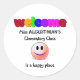Cute Teacher's Welcome to My Class-klistermärken, visar ett starkt färgat VELCOME följt av en ordalydelse som lyder (för in ditt namn här)'S CLASS IS A LYCKLIG STÄLLE. Den här texten är ANPASSADE så att du kan lägga till ditt namn och din klass eller skapa din egen text. Det finns också en leende ikon i ansikte. Du kan använda dessa välkomstklistermärken att välkomna din nya studenter back to school. Matchande gåvor är tillgängliga.