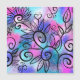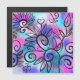 En lustig liten fågel i det övre lämnat hörnet och blommigt inslag i rosa, lila och turkos.