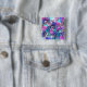En lustig liten fågel i det övre lämnat hörnet och blommigt inslag i rosa, lila och turkos.