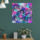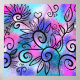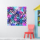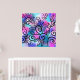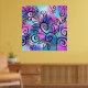En lustig liten fågel i det övre lämnat hörnet och blommigt inslag i rosa, lila och turkos.