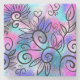 En lustig liten fågel i det övre lämnat hörnet och blommigt inslag i rosa, lila och turkos.