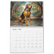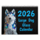 A dog calendar featuring twelve 3d glass dog breeds in extravagent settings.