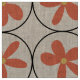 Bold retro peach floral tile design printed on premium natural linen fabric. This statement-scale geometric botanical print features a rustic oatmeal base, making it ideal for luxury throw pillows, custom upholstery, and artisanal home decor projects. The durable linen texture enhances the warm peach tones, providing a sophisticated vintage-modern look for curtains, aprons, and statement interior accents.