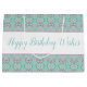 Anpassa texten från grattis på födelsedagen till kostym till vilken tillfälle som helst på denna stora papper till presentsäcken från stil i en finare mönstrad utformning med rosa och teal, kan bakgrunden ändras till vilken färg som helst till kostym som stil eller tillfälle.