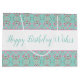 Large Teal and Rosa Tote Stil Birthday Gift Bag
