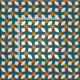 Large Teal Orange Floral Grid Cotton Twill Tyg