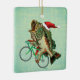 Largemouth Bass Riding a Bicycle with Santa Hat Julgransprydnad Keramik