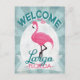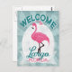 Largo Florida rosa flamingo. I vintage resor poster stil, står det "Välkommen till Largo, Florida" i turkos av rosa, vit och mynt grönt.