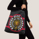 Kroppssäck stor svart med svart, guld och vit koncentercirklar ovanför en svart och guld-rektangel med "KANSAS CITY, MISSOURI CENTER OF THE UNIIVERSE". och med Y-NOT-ME-logotyp på baksidan. Det här är en utflykt till Kansas City, Missouri, en stad av mästare.