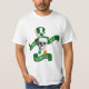 Lustigt humoristiskt alternativ tatuering av goteskt skalle stil St patrick's day med texten "kyss min schampo" i grönt och vitt med irländsk flagga för din irländska firande.