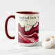 Elevate your morning ritual with the sophisticated motion of this Abstract Wine Pour personalized mug. This stunning design captures the fluid dynamic of a rich red wine pour, translated into a piece of modern liquid art. Swirls of deep burgundy, merlot, and ruby red create a mesmerizing, flowing aesthetic perfect for the modern kitchen or home bar. Whether you are a dedicated sommelier, a casual vino lover, or shopping for an elegant hostess gift, this high-quality ceramic mug is a conversation starter. Personalize it with your name, monogram, or a phrase like "Wine o'Clock" in an elegant font. Durable, microwave safe, and dishwasher friendly—cheers to artful living!