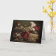 I denna mycket detaljerade och nostalgiska scen tar Jultomten ett sällsynt vila, sittande i en stor antikstol. I sin traditionella röda sammetsrob som trimmas med lyxuriös päls läser han North Pole News med en lugn fokus. Att omge honom är ett ornat bord, förlagt med festliga arrangemang av röda bär, ro och evergreen sprigs, tillsammans med en elegant guldklocka som tickar bort timmarna till Kväll under julen. Pilar med inslagna gåvor, vintage paket och utspridda prydnadsföremål sluter den varma och tidlösa atmosfären. Bilden fångar inte tomten i brådskan att leverera gåvor, utan i en serene, reflekterande paus - nedsänkt i helgdag tysta charm.