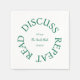 "Läs Discuss Repeat" Den pappra napkin för Klubben Bok. Anpassa till bok-klubbens år och plats. Perfekt för en lokal klubb i bok. Designad för att matcha Läs diskussion Upprepa Bok Klubb-samlingen.