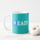 READ! är skrivet i klassisk vit brev med "R" inramad i en koboltblå låda. Bakgrunden är turkos. Finns i många färg, stilar och storlekar, men förhandsgranska designen innan du köper den för att se till att den ser ut som du vill ha den. Perfekt för lärare, bibliotekarier, föräldrar och hemlärare.