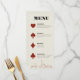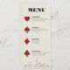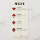 En roligt och ett modernt målbröllop på Las Vegas-middagsmeny som lägger till en speciell anpassningsbar till Las Vegas-evenemanget! Den här bröllop-menyn innehåller kostym-grafik med rött fet stil, en modern Las Vegas-skylinåtergivning och ett helt anpassade och text på bakgrunden till elfenbenstorn. Perfekt för ett trendig, ett modernt eller klassiskt evenemang - den här samlingen från elegant bröllop är mångsidig!