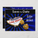 Den här roligten "Las Vegas Starburst" sparar datumet inbjudan är perfekt för Vegas destinationsbröllop och kasinokemerade evenemang. För frågor eller förfrågningar, e-post: glamprettyweddings.com/contact. Utformad av Cheryl Daniels © 2013. Matchande produkter finns tillgängliga på begäran.