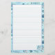 En mjuk, blå, papper, dekorerad med ett bok-tema med bokar, bokmärken och små blommor som målats i vattenfärg på en robinblå bakgrund.