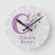 Låsa in en Blommigt design med Namn & initial Rund Klocka